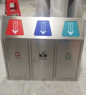 使用范圍:不銹鋼三聯(lián)推蓋環(huán)保垃圾箱廣泛應(yīng)用于機(jī)場(chǎng)、地鐵站、高鐵站、商場(chǎng)、高檔寫字樓、學(xué)校、酒店。
