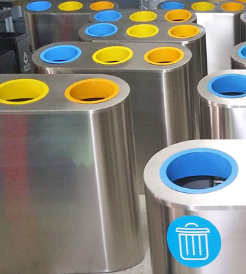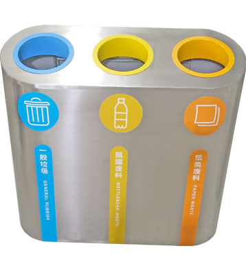 三合一不銹鋼垃圾箱核心部件可模壓成型不脫焊不易破損堅固耐用。全桶身不銹鋼制作的垃圾箱還具有防火功能,三合一于一體,搭配三色噴塑投口和與之對應的箱體垃圾分類標識及文字說明,清晰醒目辨識度高有利從源頭規范可回收物、其他垃圾、有害垃圾常規的三分類垃圾投放,還可做商場、地鐵站一般垃圾、瓶罐廢料、紙類廢料等分類垃圾收集使用;斜面投口款式新穎突顯個性,焊點平整光滑整體高雅美觀,無利口不傷手;可根據客戶需求選配鍍鋅內桶或玻璃鋼內桶。
