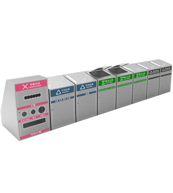 不銹鋼分類垃圾箱回收站核心部件可模壓成型不脫焊不易破損堅固耐用。由有害分類垃圾箱和不銹鋼分類回收站組合,含可回收物、廚余垃圾、有害垃圾、其他垃圾4分類共8個分類垃圾箱組成,全桶身不銹鋼板材沖孔制作,不僅通風(fēng)保障內(nèi)桶干燥防銹蝕,還具有防火功能,分類投口提手設(shè)計垃圾投放方便,做工精良焊點平整光滑整體高雅美觀,無利口不傷手用于城中村垃圾分類示范點防銹耐用。