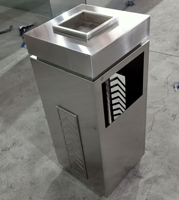 小區果皮箱核心部件模壓成型不脫焊不易破損堅固耐用。全桶身304不銹鋼表面防指紋處理電鍍工藝,果皮箱頂部嵌入煙灰盅放小石子滅煙和煙蒂收集使用,還具有防火功能,金屬亮澤,高雅美觀,應用范圍廣;內外表面光潔,減少垃圾殘留,易于清潔;可根據客戶需求選配鍍鋅內桶或玻璃鋼內桶。