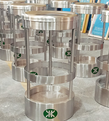 地鐵不銹鋼圓形防爆果皮箱核心部件模壓成型不脫焊不易破損堅(jiān)固耐用。單桶外觀圓形設(shè)計(jì),3根實(shí)心不銹鋼立柱等分與桶頭底座焊接成型,中間圓形包邊加固,無內(nèi)桶,活動(dòng)桶蓋直接套透明塑料垃圾袋收運(yùn)便捷,垃圾存放情況一目了然。制作工藝精良打磨光滑無利口不割手。底座配重不易傾倒,通過透明垃圾袋可以看見垃圾存放情況、是否存在違禁品及可疑物品能及時(shí)發(fā)現(xiàn),反恐防范安全隱患!