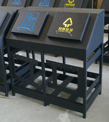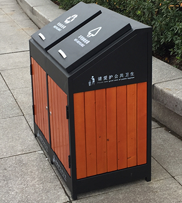 產品材質:欣方圳街道帶蓋分類鋼木垃圾箱采用現(xiàn)代化批量制作工藝