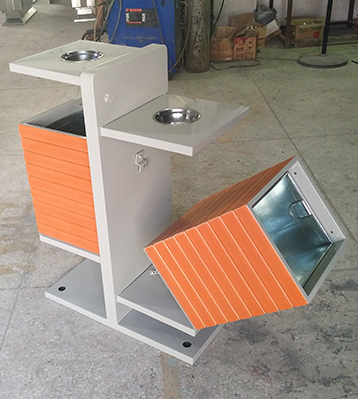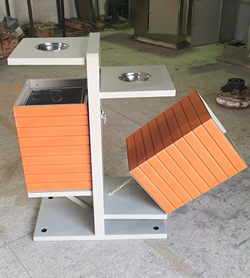 產品材質:欣方圳公園創意分類鋼木垃圾桶采用現代化批量制作工藝