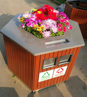 4、現有圓形和六角造型兩種款式,也可根據客戶來圖來樣定制。桶頭部分帶花箱具有種植鮮花綠植功能,桶身開口可回收與其他垃圾2分類投放,既能方便旅客提供垃圾投放便利,又能美化裝飾站臺環(huán)境。對側缺口下沉做煙灰缸,做滅煙和煙蒂收集使用,緩解旅途疲勞消除安全隱患。