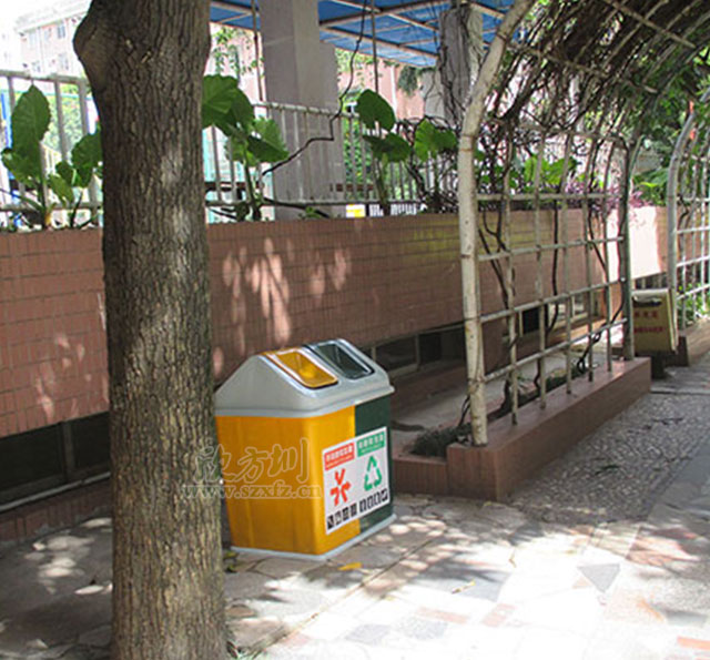 ?? 現在小區綠化區域每隔幾十米就設有欣方圳的A23玻璃鋼分類垃圾桶,A23玻璃鋼分類垃圾桶是一種分類雙桶。可以讓紐扣電池與廚余垃圾混合丟放的處理方式,直接從源頭上進行垃圾分類,減少混雜的機率,保護環境。能更高效地為垃圾處理單位進行分類處置,從而進一步簡化了垃圾處理程序,也提升了小區環境。